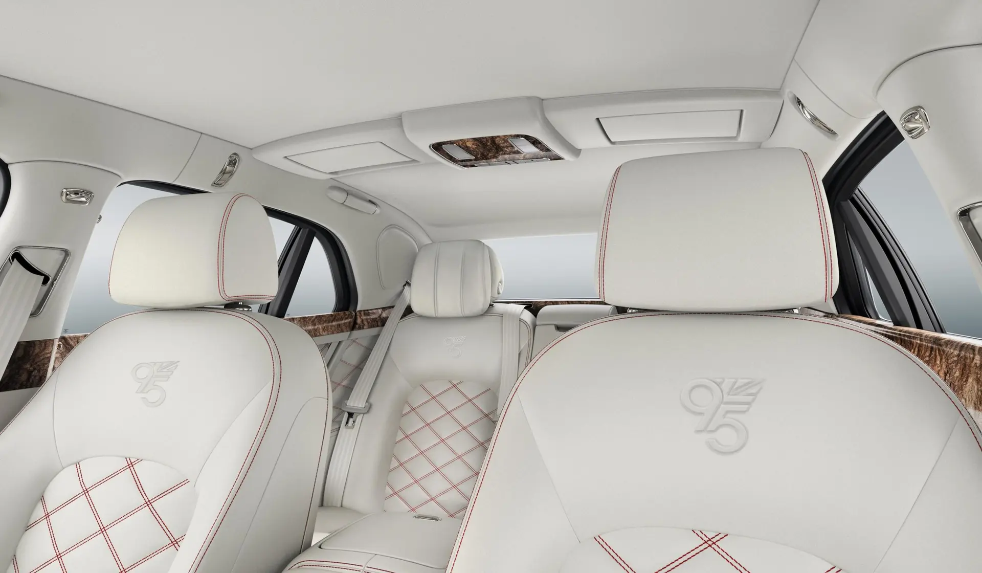 The classic red, white and blue colour palette is complemented by some eye-catching exterior design touches unique to Mulsanne 95, with a dark tint finish given to the iconic Flying B bonnet mascot and the striking 21-inch five-spoke wheels.