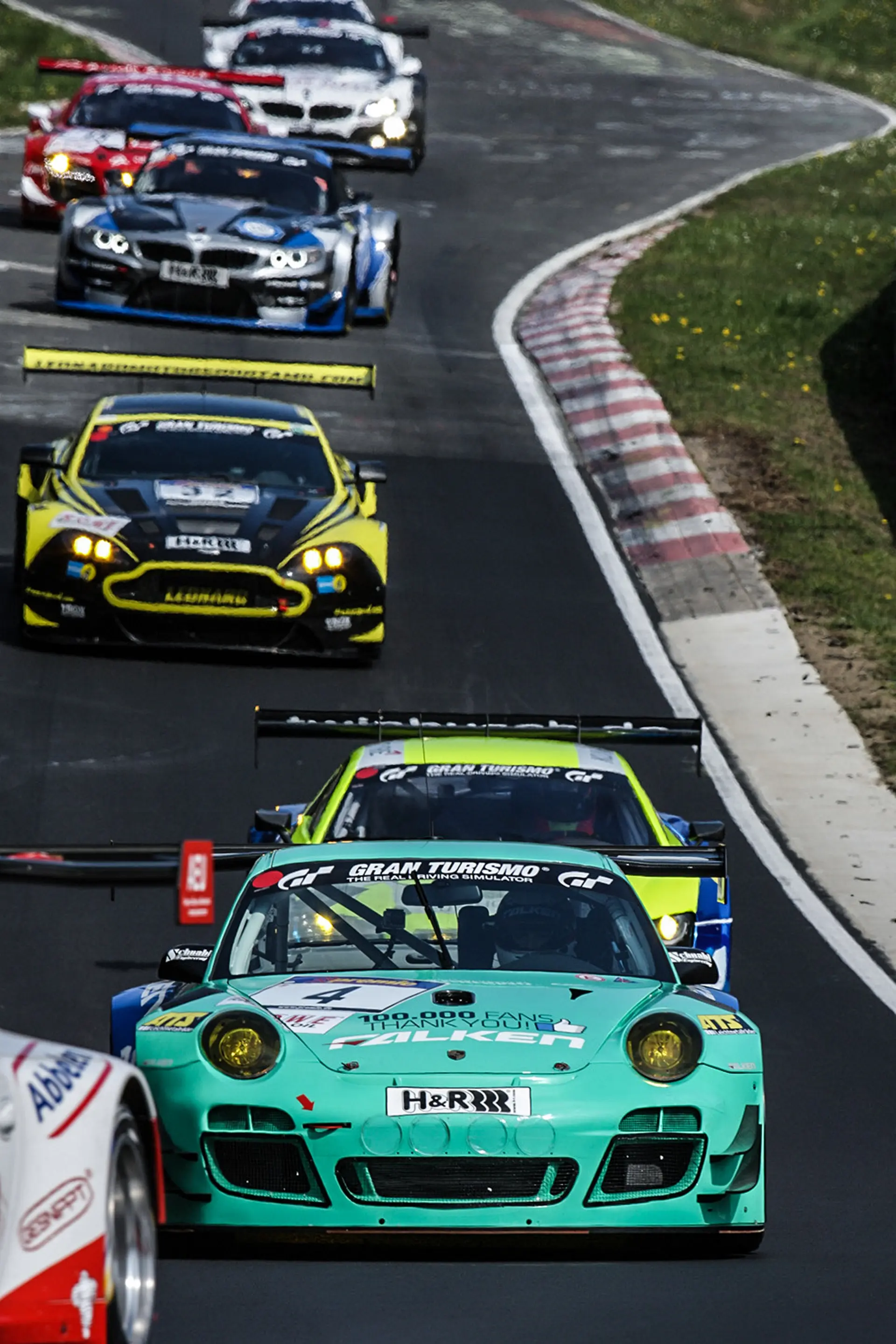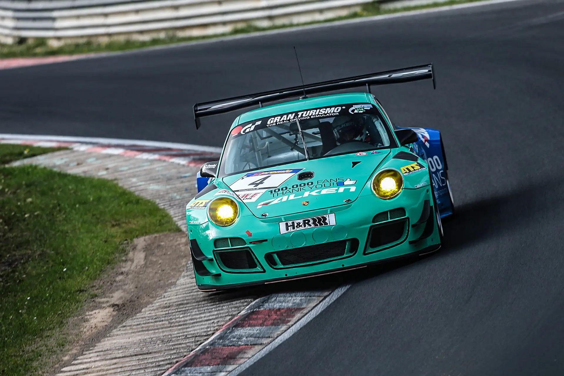 The recovery process started on Monday: Representatives from Falken’s headquarters in Japan, its European headquarters in Germany, race team manager Sven Schnabl and the Porsche Motorsport department convened to see if it was feasible to field a car in the next race. In the back of everyone’s mind was the need to test new tyres before the 24-hour race. With time running out ahead of the June enduro, everyone agreed all opportunities had to be seized. With insufficient time to repair the existing car, the answer was a fresh chassis from Porsche. By luck a GT3 spec 997 was in stock and after the deal was completed on Tuesday, the Schnabl trailer was dispatched and a new, plain white GT3R was picked up direct from Weissach the following day. The entire Schnabl team toiled all night and by Thursday morning, the ‘stock’ GT3 was transformed into a VLN spec racer, set up for the Nordschleife. Come 12 o’clock on Friday, the car was rolled out in Falken’s iconic colours and incredibly, was ready for qualifying.