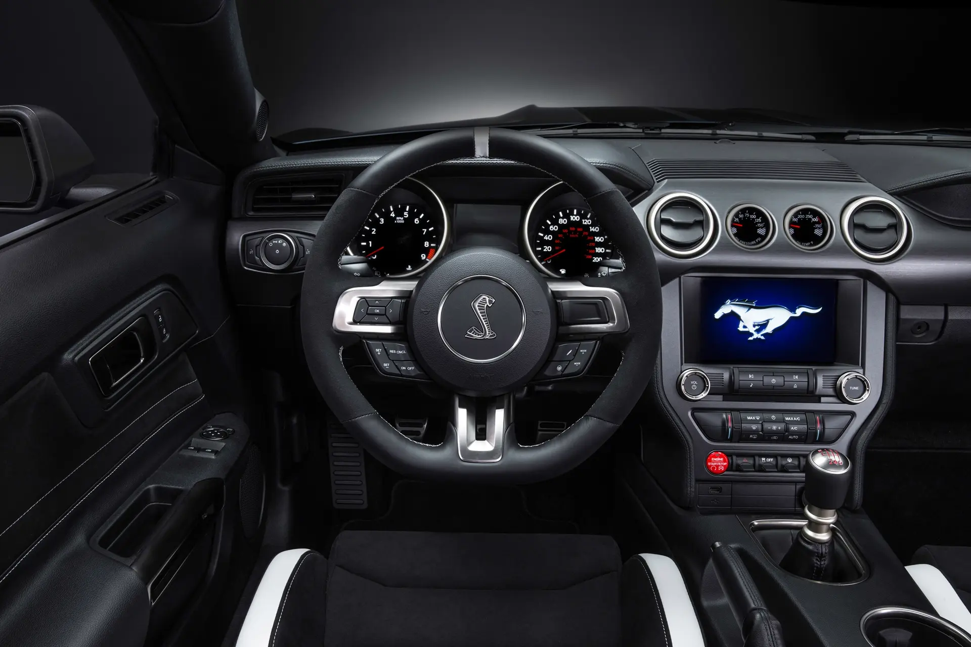 For customers seeking more comfort in their Shelby GT350R, Ford is offering an optional Electronics Package. Included is dual-zone air conditioning, 8-inch touch screen with navigation, seven-speaker audio system, turn signal mirrors and more.