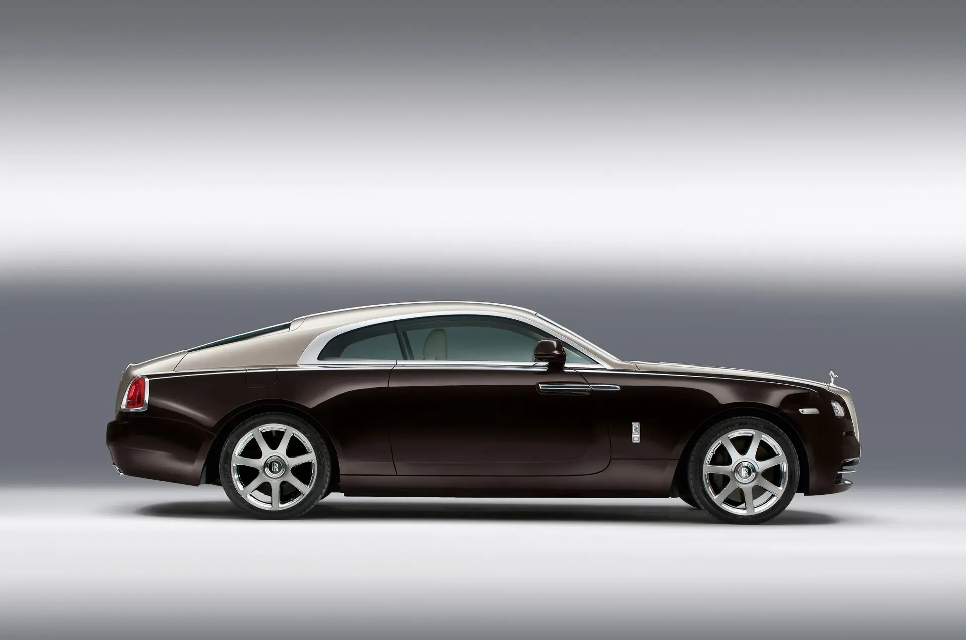 In profile, Wraith’s sweeping fastback design gives the car its unique character. Bold lines, tension in the panels and a raked rear screen evoke the image of a world class athlete poised in the starting blocks. Further expression of dynamic intent can be seen in Wraith’s deeply recessed grille, wide rear track and dramatic two-tone presentation.