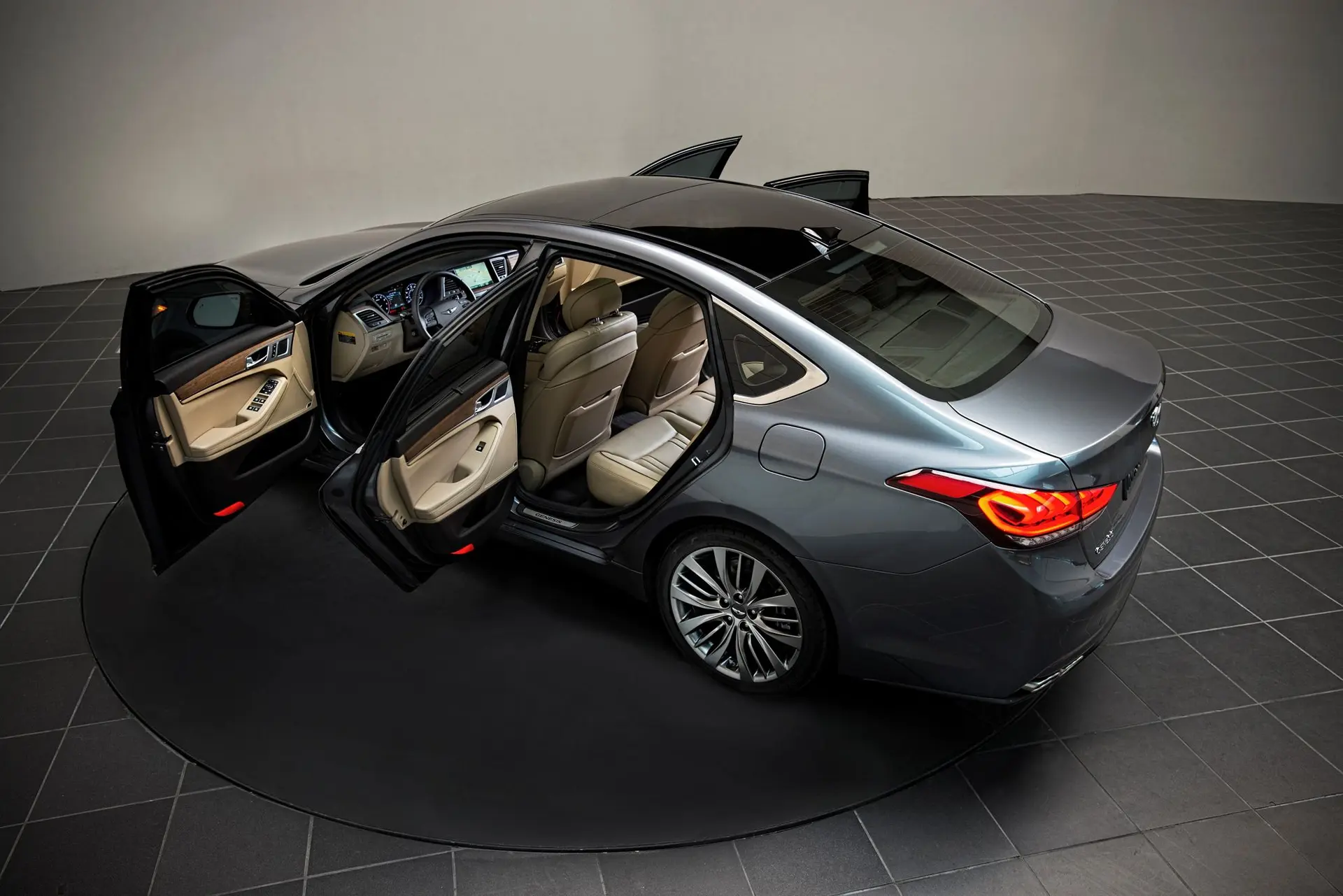 A new design pattern has been introduced to decrease relative interior reflections and brighten dashboard surfaces, while high-grade materials such as genuine aluminum and matte-finish wood are available. Cohesion between the center fascia and audio controls has been ensured through a streamlined design, making the two separate sections appear as one. To ensure a luxurious feel, Genesis was intensely scrutinized for its use of materials, with extensive analysis of the relationship of different materials, their texture and color coordination.