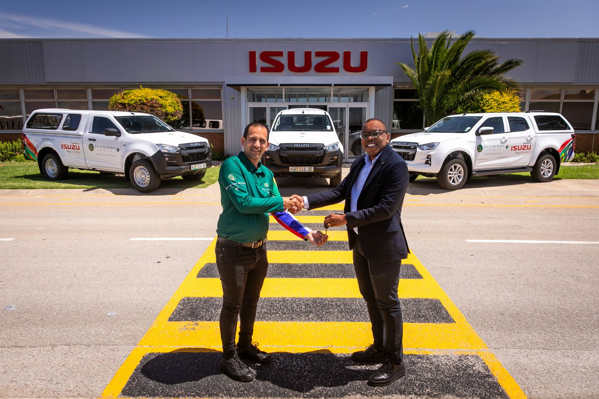 “As we receive these three ISUZU D-MAX bakkies today, we are extremely motivated to do more. These vehicles are lifelines which serve as a critical logistic tool, especially with mobilising our teams to reach communities situated in challenging terrains. Transport forms a big part of what we do as we are often the first point of contact to provide disaster relief to those in need, making our partnership with ISUZU invaluable.”, says Dr Imtiaz Sooliman, Founder: Gift of the Givers.