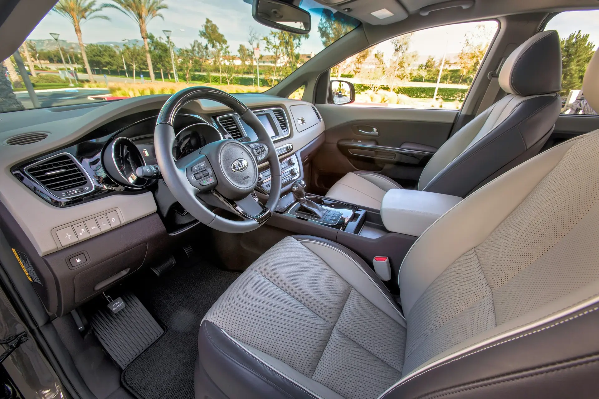 The Sedona’s sophisticated interior design theme is brought to life with a modern color palette featuring solid or two-tone color options in beige, gray and burgundy for a warm and inviting atmosphere. The top-line SXL trim features standard ultra-soft Nappa leather seating surfaces throughout the cabin, the same Chromium-free leather found in the K900 luxury sedan.