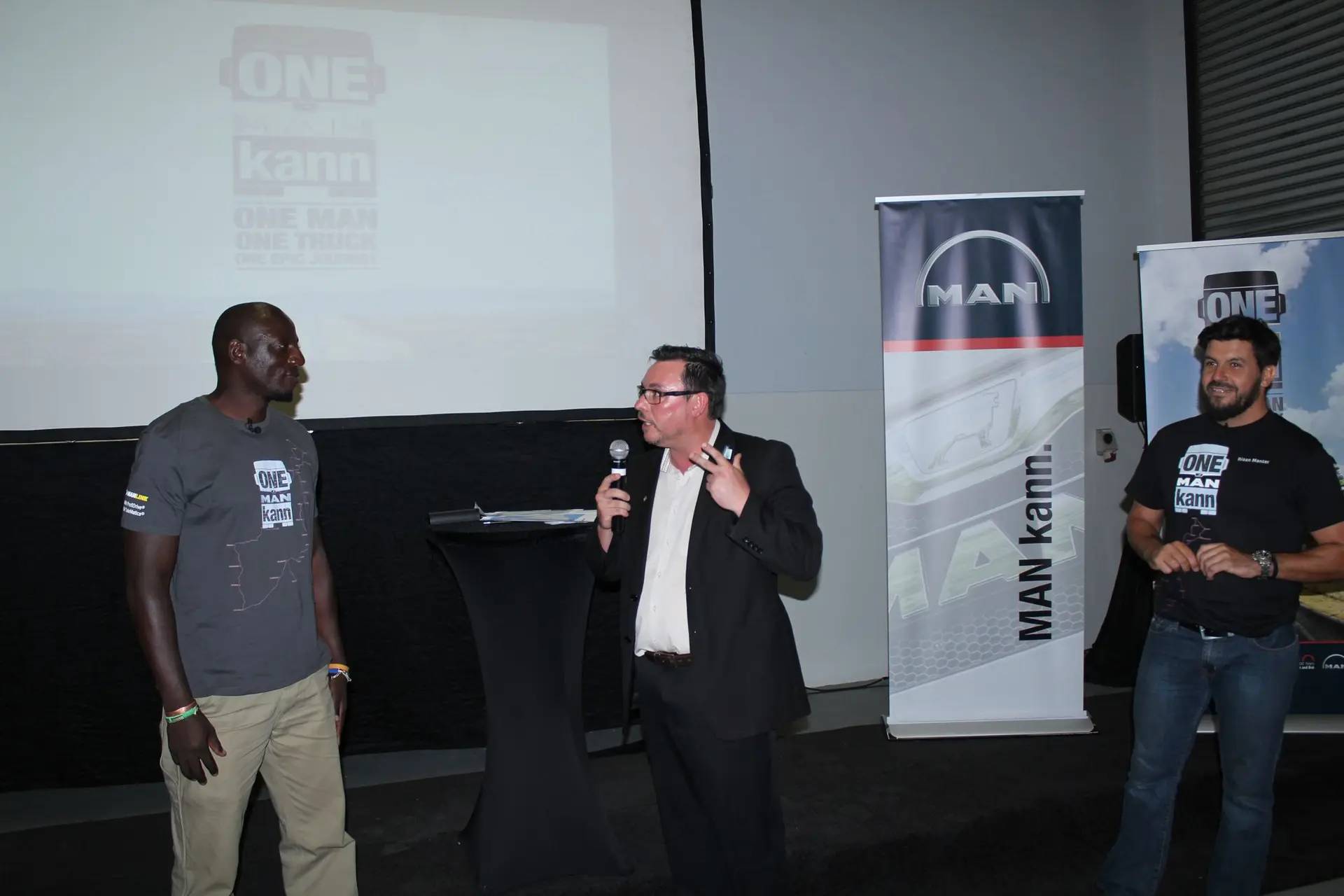 Stopping over at the new dealership for the roof-wetting event on its way to Cape Town was the ONE MAN kann adventure-trucker team of Riaan Manser and Nduna Chari in the new MAN 540-hp long-haul truck, the 6×4 Euro 5 MAN TGX 26.540.