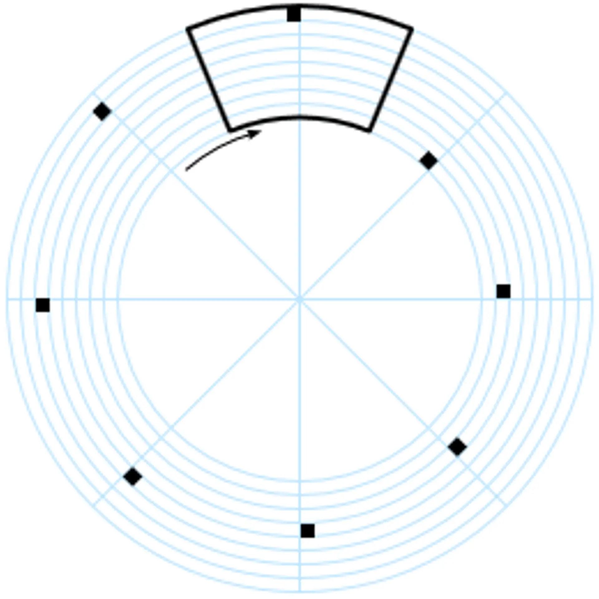 The Nipkow disk. This schematic shows the circular paths traced by the holes, that may also be square for greater precision. The area of the disk outlined in black shows the region scanned.