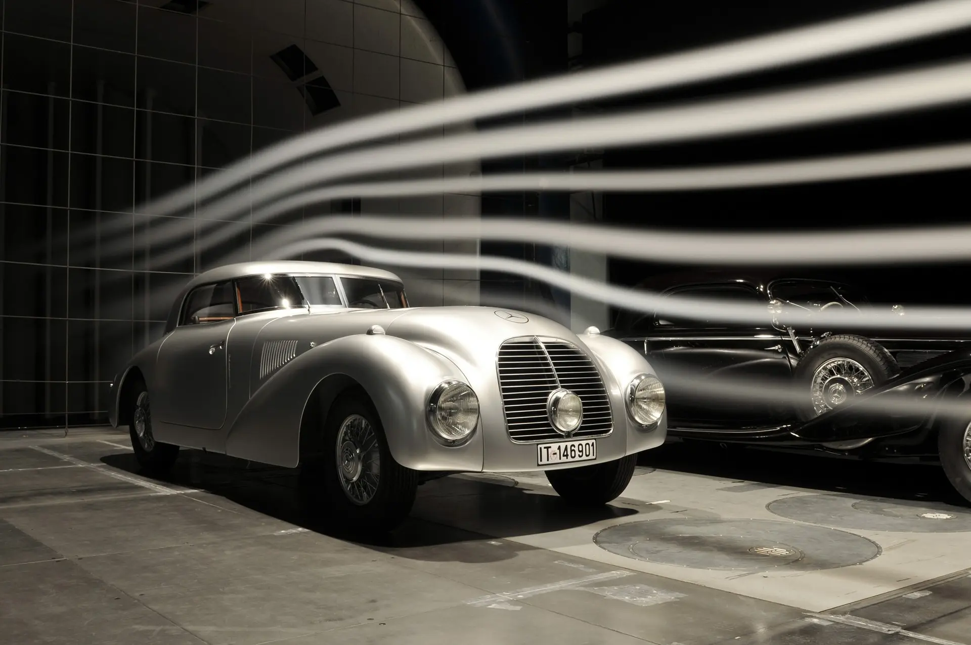 Measurements made in the wind tunnel in May 2014 revealed a drag coefficient of Cd = 0.36 – exquisite for a vehicle from the 1930s. A direct comparison with a standard-specification 540 K Coupé makes clear the leap made here in terms of aerodynamics: the figure for the coupé is Cd = 0.57.