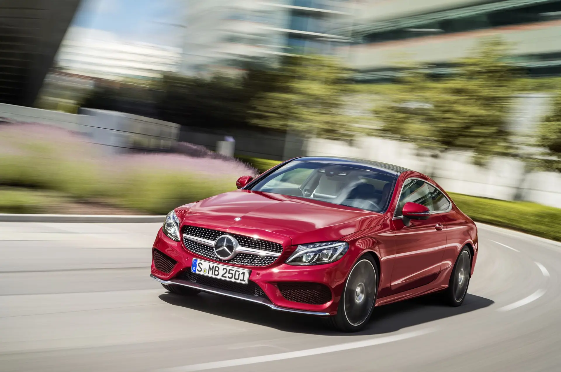 - The C 63 S has an additional “RACE” driving mode.Efficient and lively enginesPowerful and efficient four-cylinder petrol and diesel engines with ECO start/stop function provide for sporty performance and driving pleasure. All are compliant with the Euro 6 emissions standard. Compared with their predecessors, they consume up to 20 percent less fuel.There are initially four petrol engines available for the Coupé. The output spectrum ranges from the 1.6-litre four-cylinder engine in the C 180 rated at 115 kW/156 hp to the two-litre C 200 (135 kW/184 hp) and C 250 (155 kW/211 hp) models and the C 300, likewise with a displacement of two litres but with an output of 180 kW/245 hp.The two diesel models are equipped with a further advanced four-cylinder unit developing 125 kW (170 hp) or 150 kW (204 hp). Both feature eco-friendly SCR technology (Selective Catalytic Reduction) for exhaust gas after treatment.