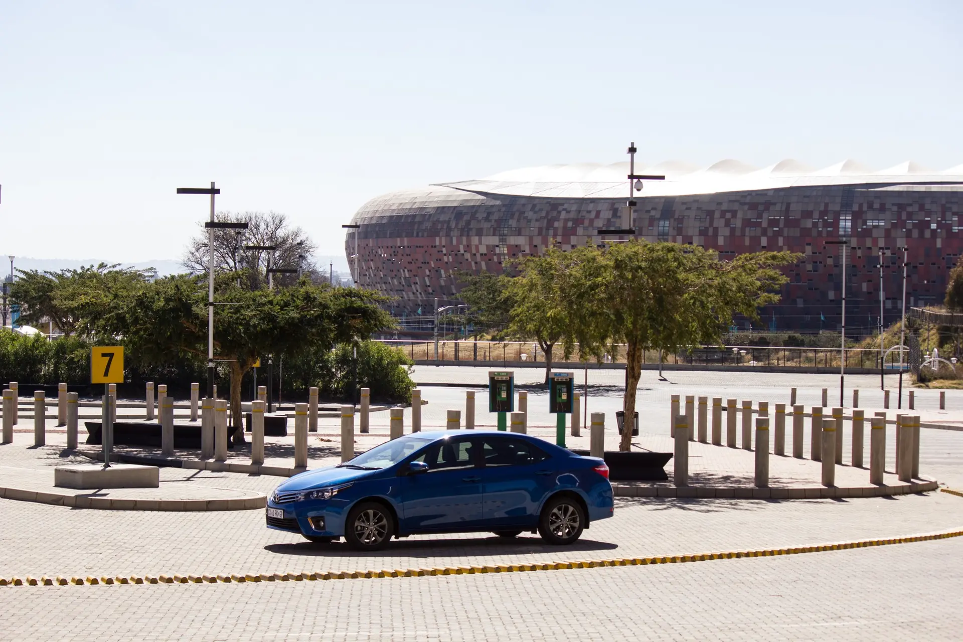 Earlier this month we received the Toyota Corolla Sprinter 2014 model to test drive and to find out what makes the Toyota Corolla Sprinter such a popular brand in South Africa. We got the car on the 11th of June 2014 and took it to the World Cup 2010 FNB stadium for some photographs. Since the start of the Soccer World Cup 2014 was taking place in Brazil on the 12th of June we thought our readers will appreciate us getting into the spirit of the game.