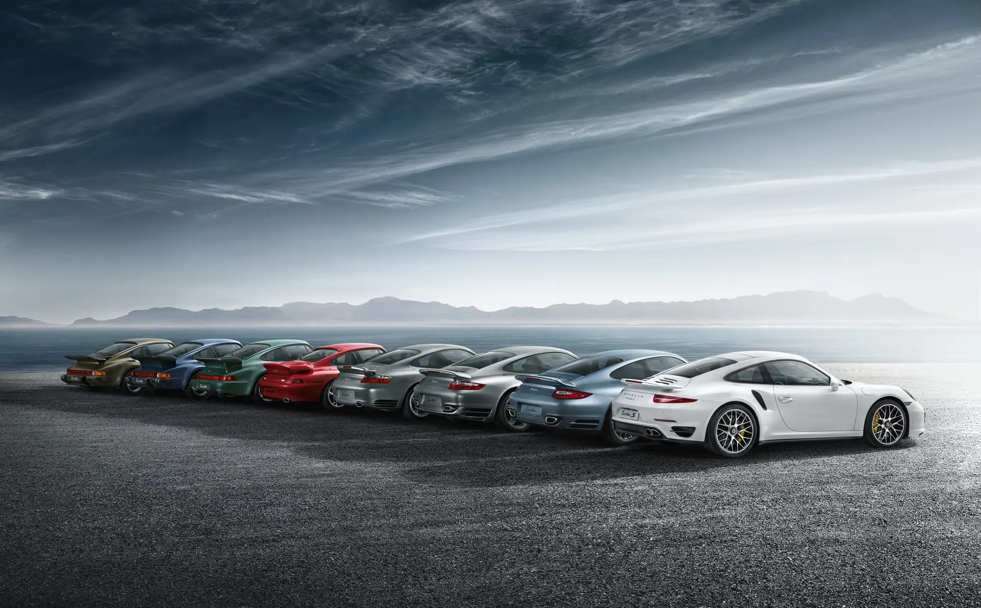 In 1974, a new 911 derivative was unveiled at the Paris Auto Salon. The first Porsche production car to boost power output by using a turbocharger, the 260 hp 911 Turbo 3.0 became the flagship of the range, and widely renowned as the ultimate sports coupe. Fast-forward 40 years, and the latest 911 Turbo S remains at the pinnacle of the model line and faithful to the original concept, right down to the rear-mounted engine, wider rear wheel arches and large tail spoiler. In 1989, the first 911 Turbo Cabriolet appeared, powered by a larger 3.3-litre engine with 300 hp and a five speed manual transmission.