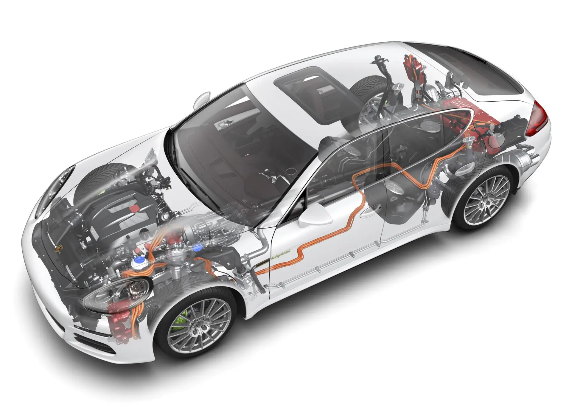 The electric motor produces 95 hp (70 kW), which is more than double the power of the previous model’s 47 hp (34 kW) electric motor. It draws energy from a new lithium-ion battery, which at 9.4 kWh has over five times the 1.7 kWh energy capacity of the previous (nickel metal hydride) battery technology. When connected to an industrial outlet, it can be charged within around two and a half hours via the integrated on-board charger and the standard Porsche Universal Charger (AC), and it can be charged in less than four hours when connected to a conventional household electrical outlet.