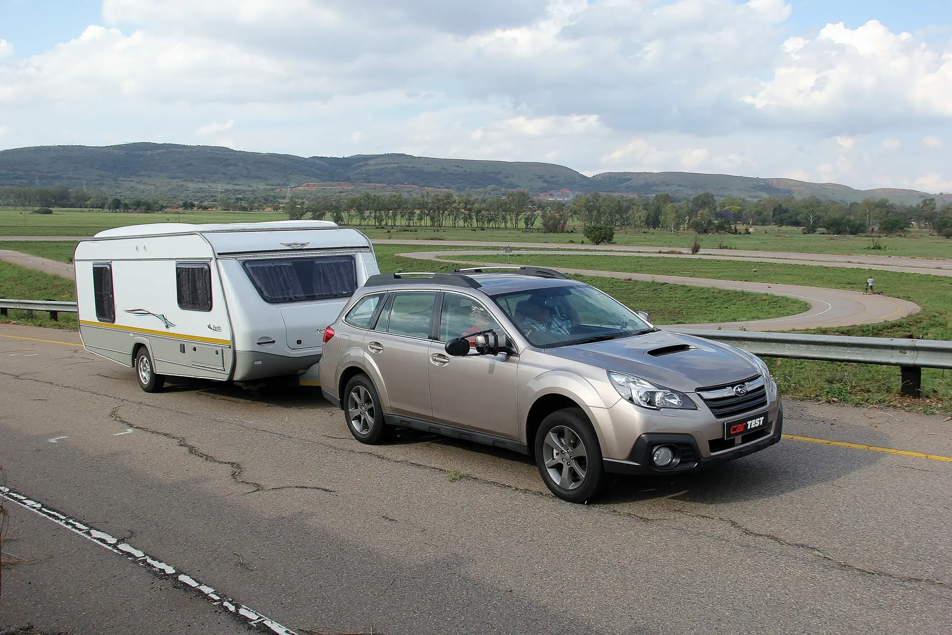 The Subaru Outback 2.0D Lineartronic™ has won the 2014 TowCAR of the Year competition, in association with CAR and Leisure Wheels magazines, Campworld and Forever Resorts. The competition, which saw twelve automatic 4×4 vehicles tested with 1.4-ton Jurgens Penta caravans at the Boekenhoutkloof Traffic College, seeks to find the SUV which performs best in a host of towing-related categories which are evaluated in controlled conditions.