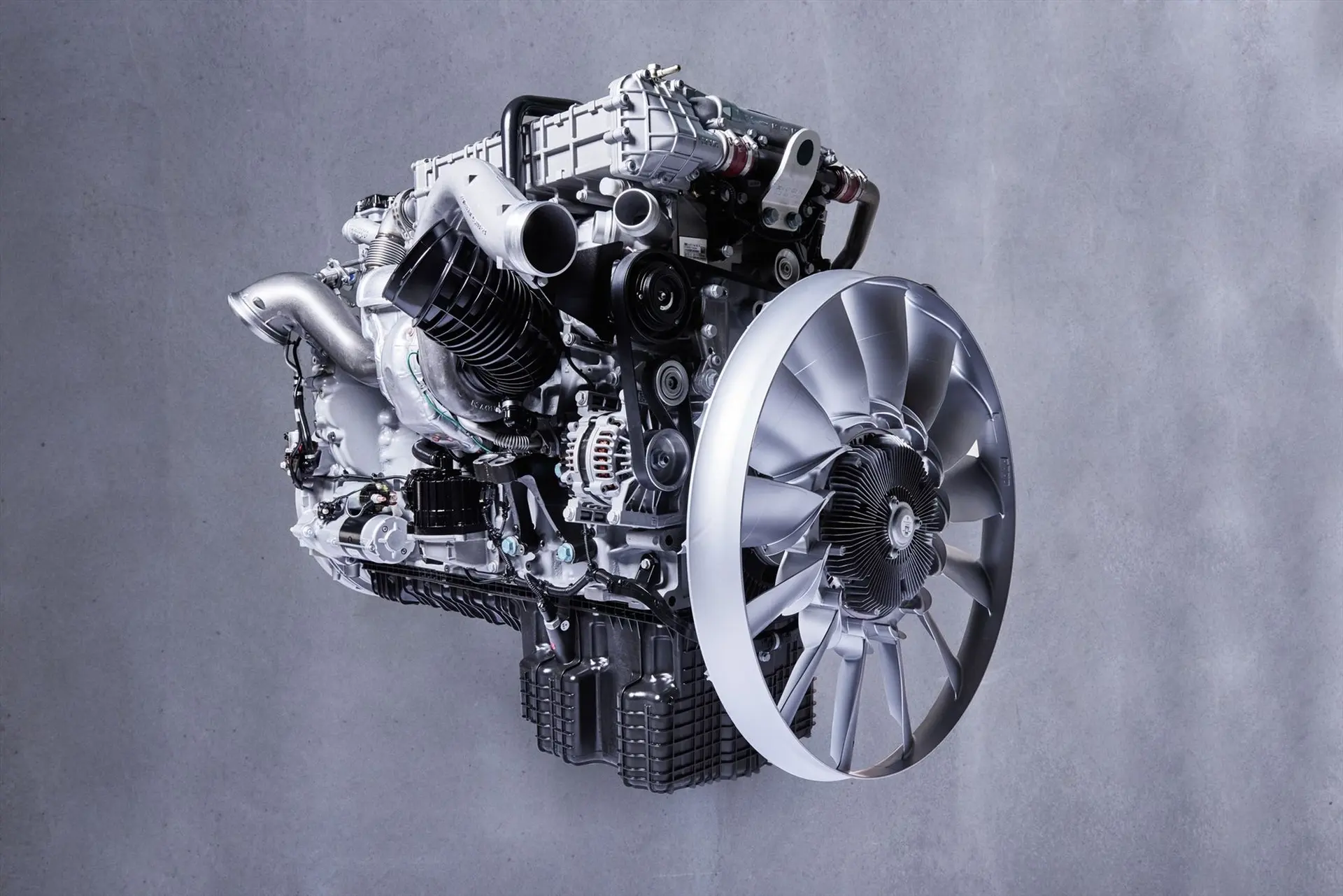 Even from its idling speed of 600 rpm, the new engine produces a mighty 1600 Nm of torque. This takes the OM 471 into the sort of power output and torque ranges that were still the preserve of far larger engines and eight-cylinder units just a few years ago.