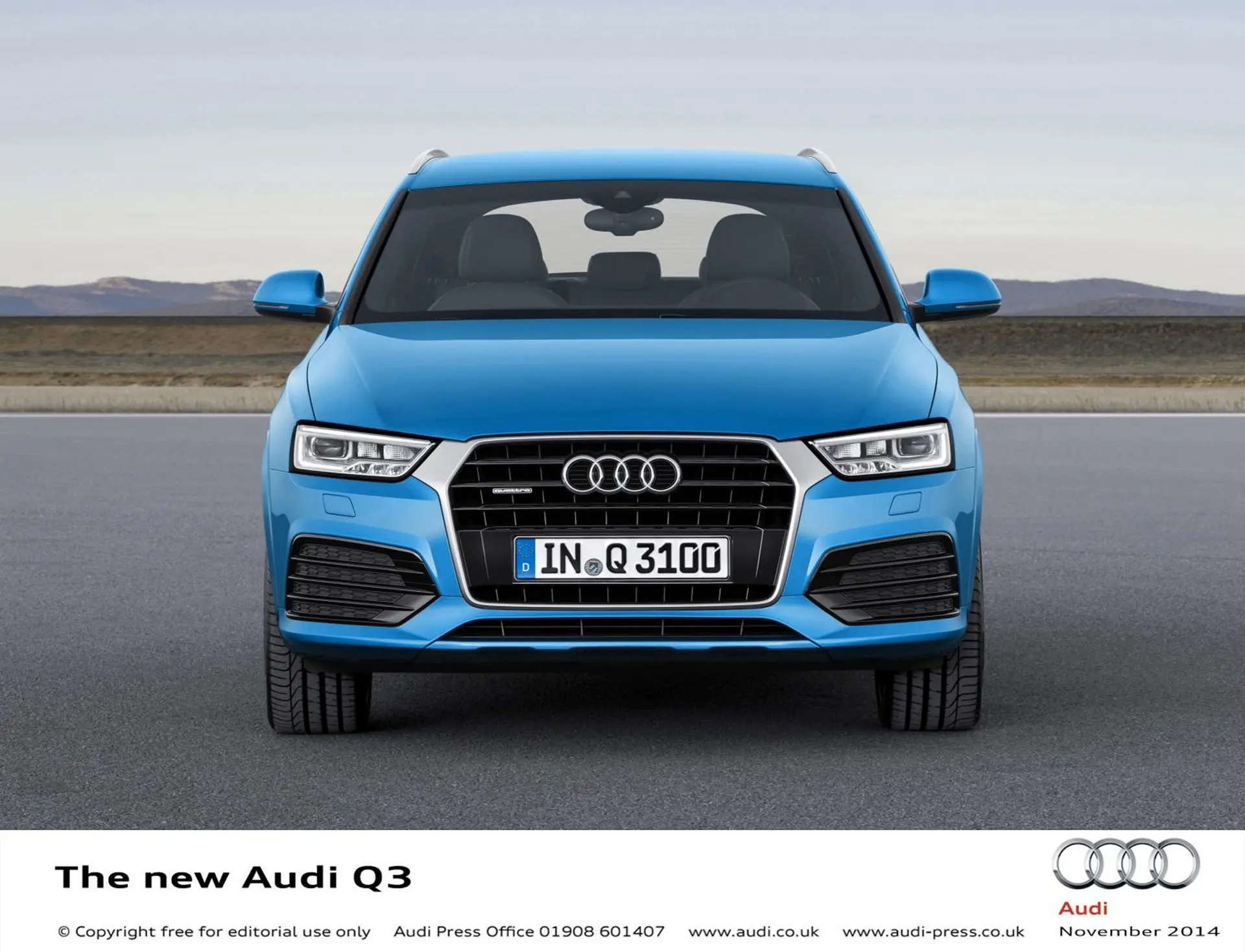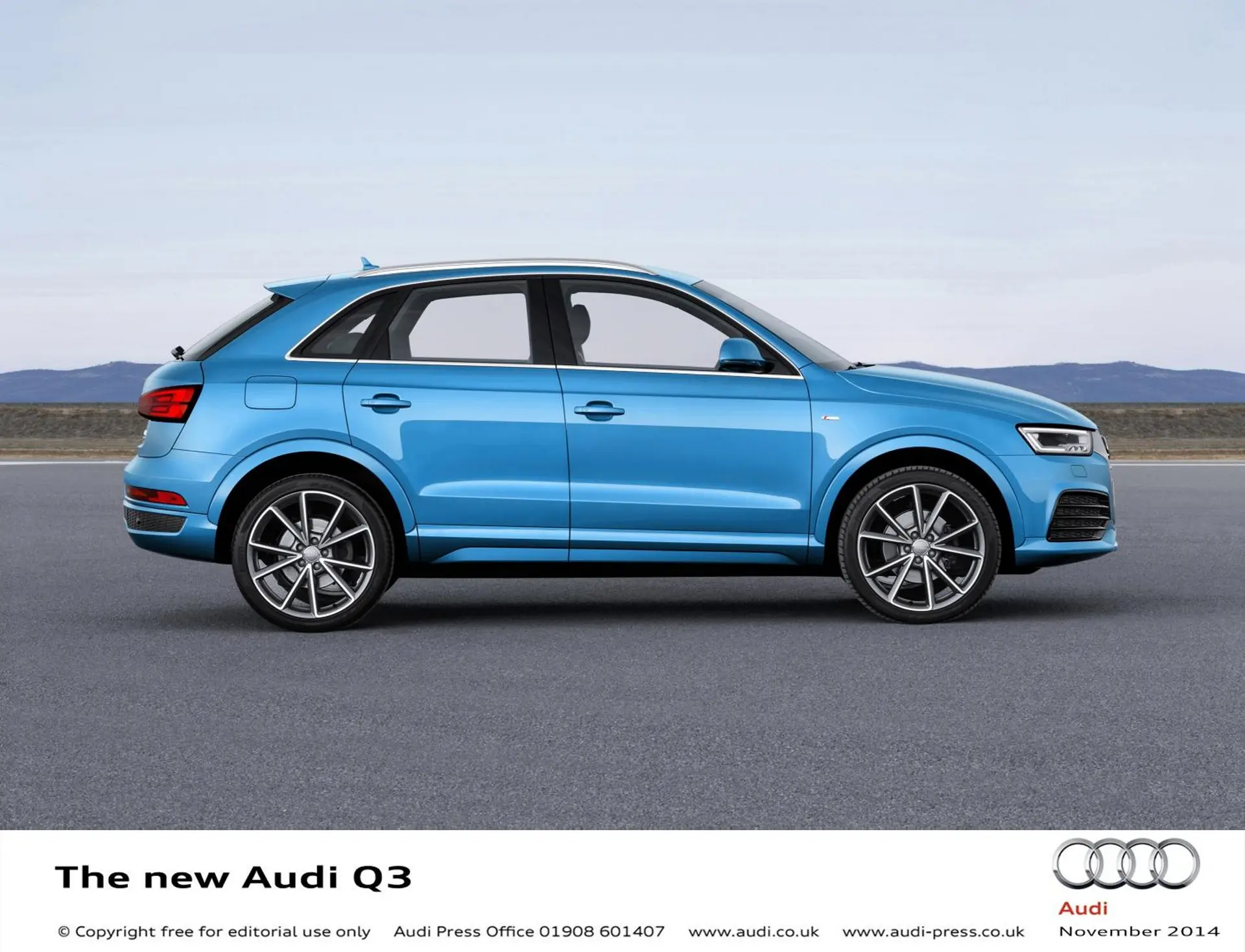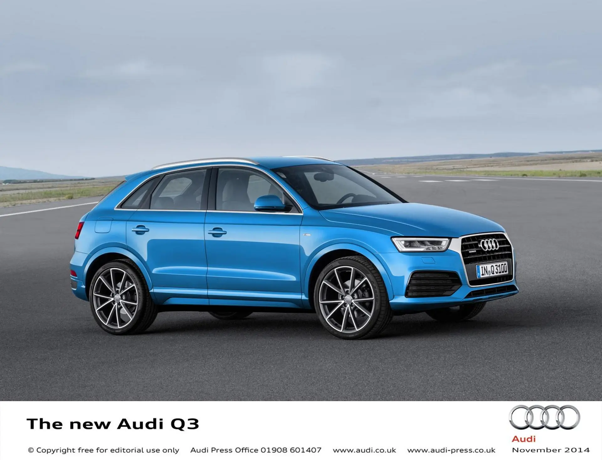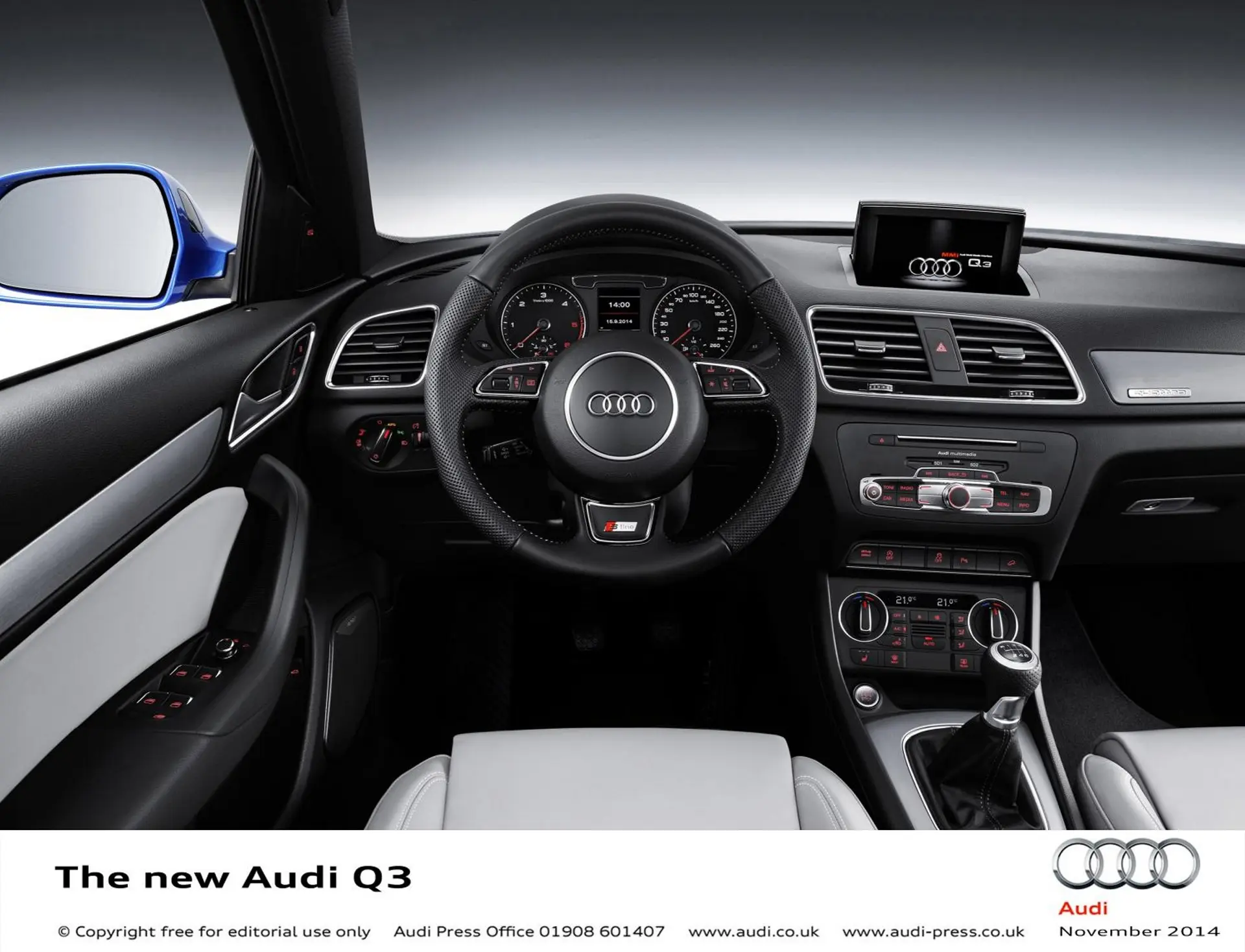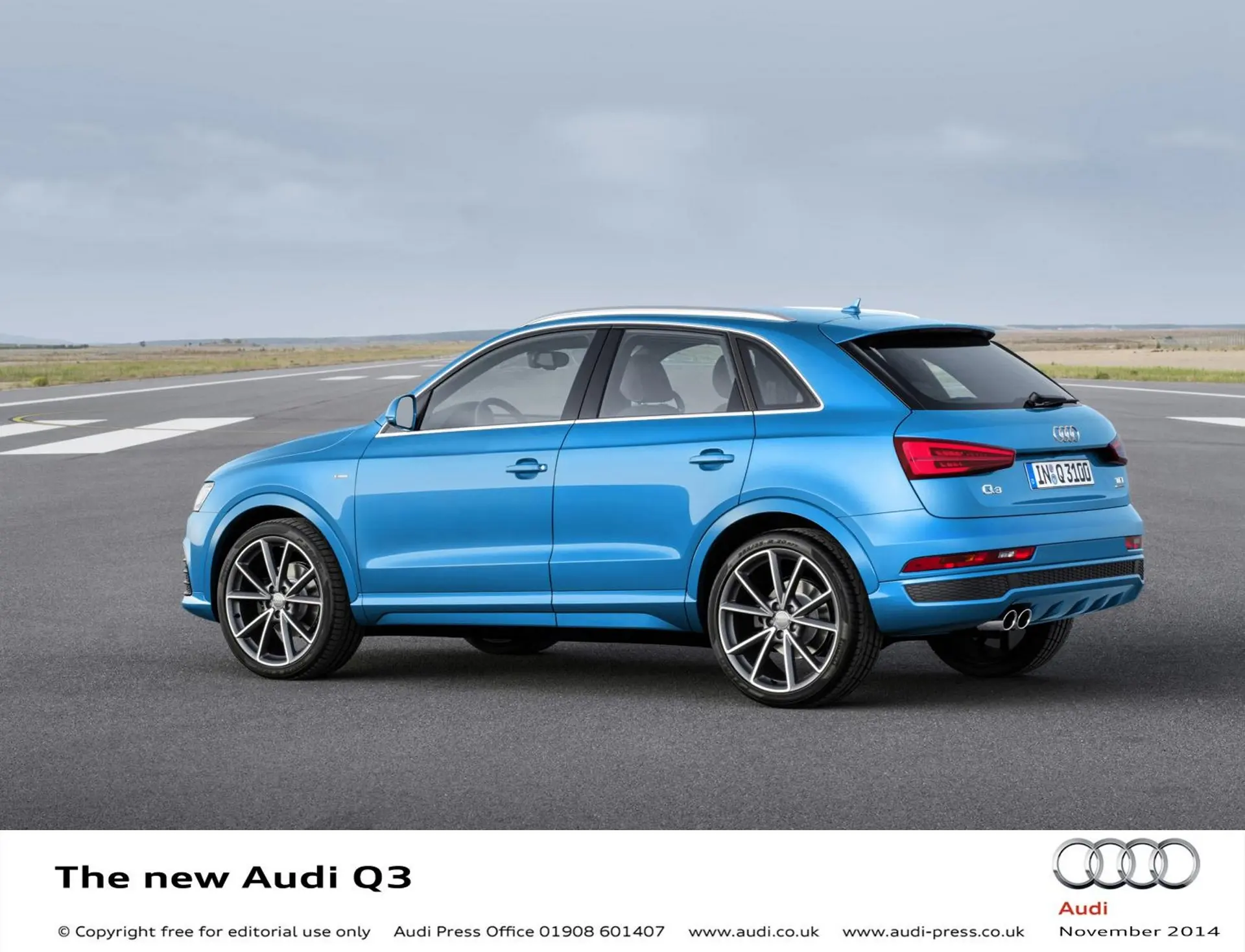 A new star in this line-up is the 1.4-litre TFSI petrol engine with Cylinder-on-Demand technology which appeared first in the A1 and A3 ranges and makes its Q3 debut here. With 150PS and the option of either manual or S tronic twin-clutch automatic transmission, it gives the exclusively front-wheel-driven Q3 1.4 TFSI a 0-62mph sprint time of as little as 8.9 seconds (S tronic) and yet also enables it to return up to 50.4mpg (manual) based on the combined cycle test. Above it in the petrol line-up is a 2.0-litre TFSI unit with power increased from 170PS in the outgoing Q3 to 180PS, which can be linked to either manual or S tronic transmission and is allied to quattro all-wheel-drive without exception.