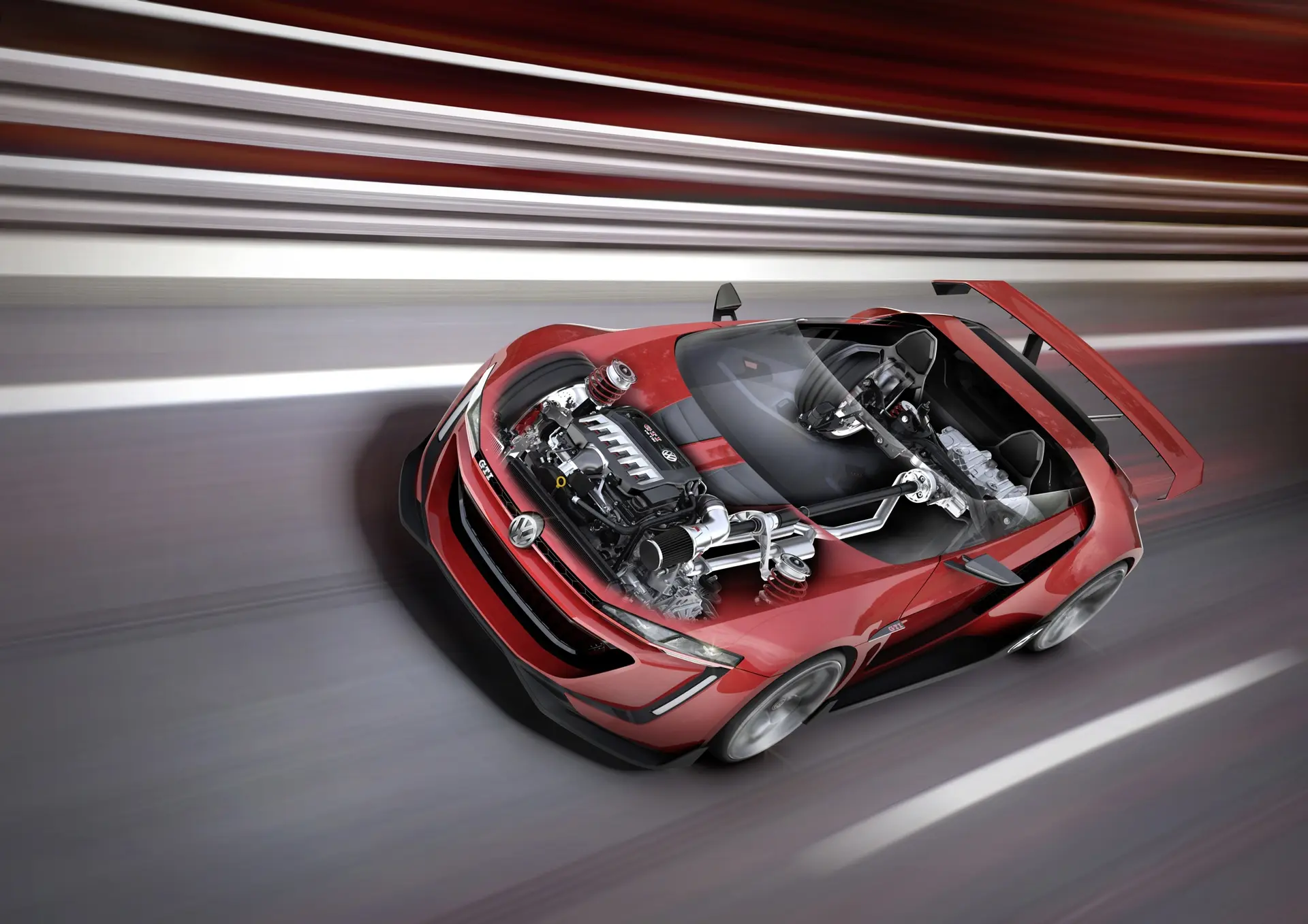 Most spectacular GTI ever. Since Volkswagen designers gave their imagination free rein in designing the “GTI Roadster” for the “GT6” game—and were able to overlook production constraints like price and production feasibility—the resulting car is certainly the most spectacular Golf GTI ever. Klaus Bischoff: “The Vision GT project offered a wonderful opportunity to sketch out extreme ideas and design elements of the GTI that are portrayed as vibrantly, dynamically and emotionally as possible. Further development of an unmistakable design and a love for detail reflect the high standards shared by the Volkswagen GTI and the ‘Gran Turismo’ by Sony PlayStation® product brands.”