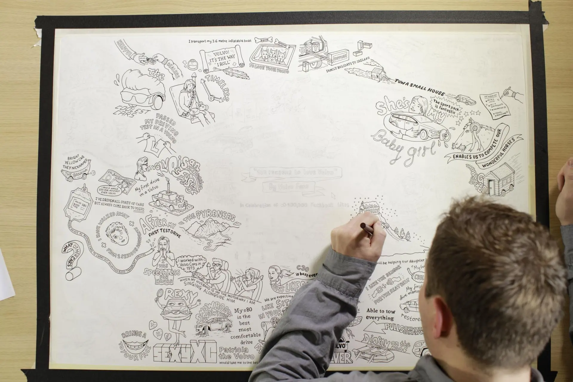- Illustrator Matt Johnstone filmed creating his work: “100 reasons to love Volvo” – to be shown on Volvo Car UK’s social media channels from today